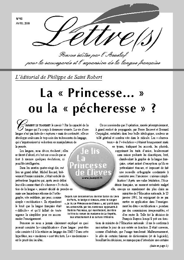 - La « Princesse… » ou la « pécheresse » ?, éditorial de Philippe de Saint Robert